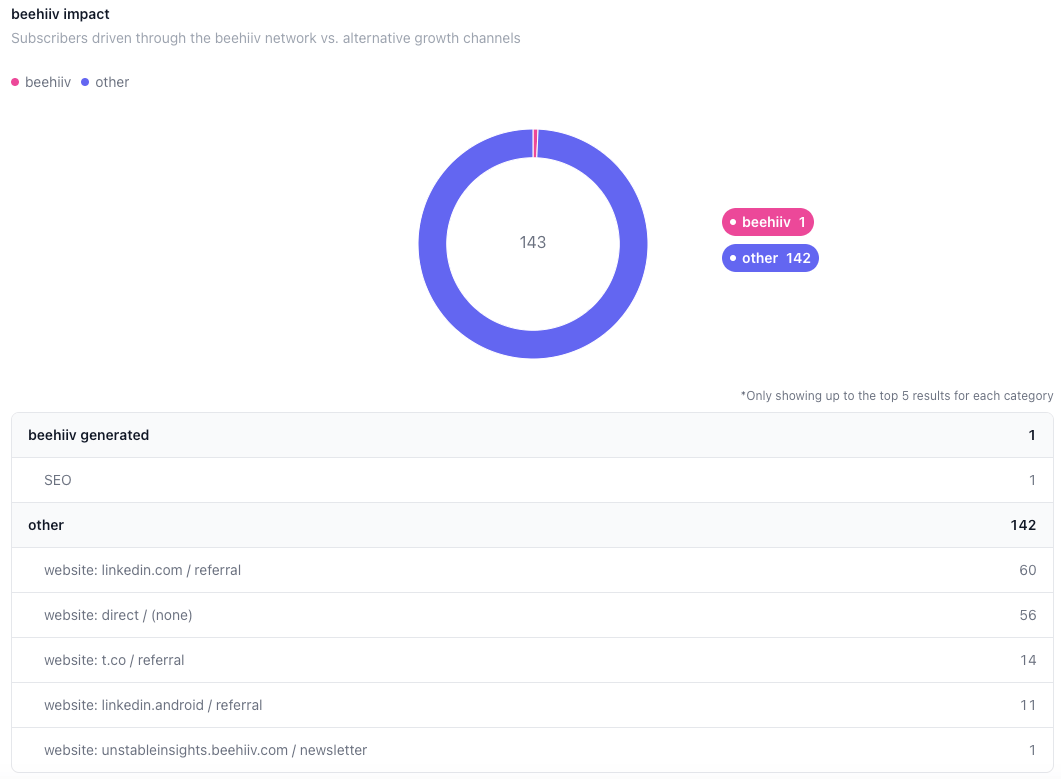 Community Referrals: 14 new subscribers from Telegram referrals (sharing links to newsletter in group chats, plus an additional 11 subscribers from LinkedIn Android users.
