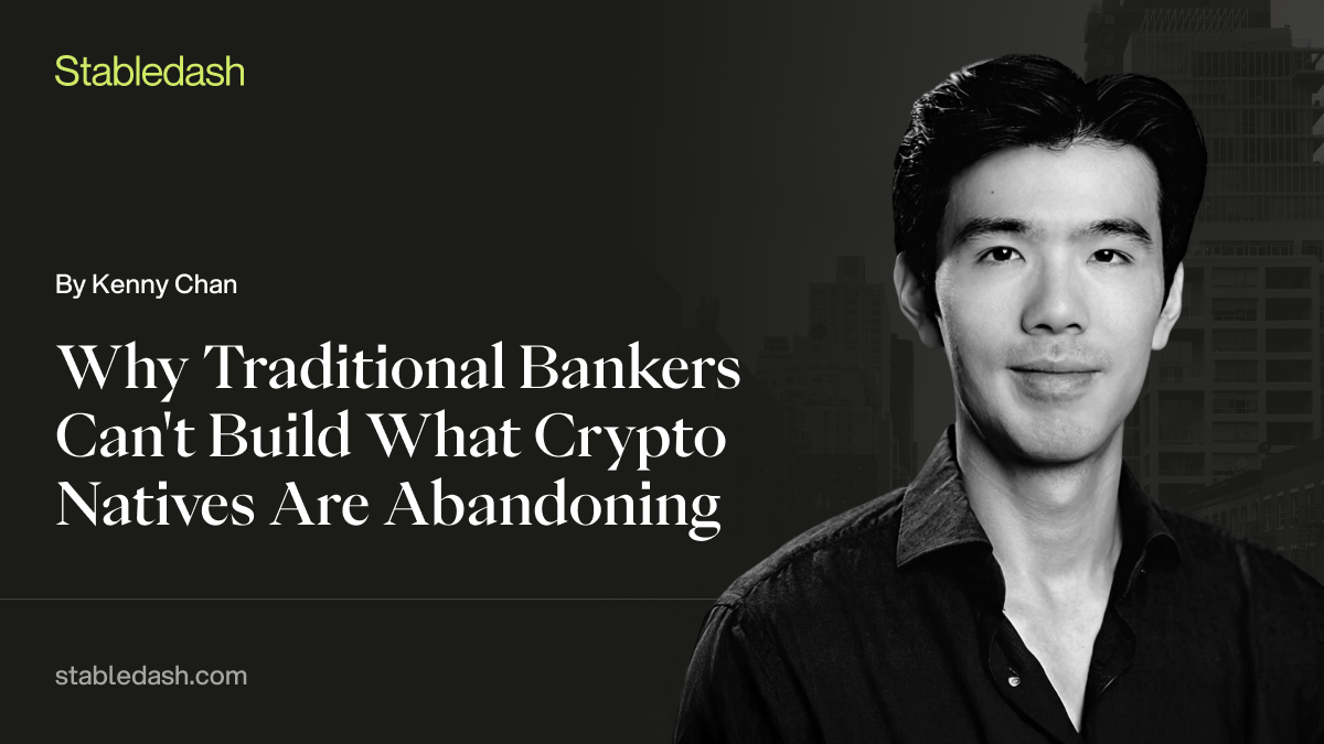 New on Stabledash: "Why Traditional Bankers Can't Build What Crypto Natives Are Abandoning".
