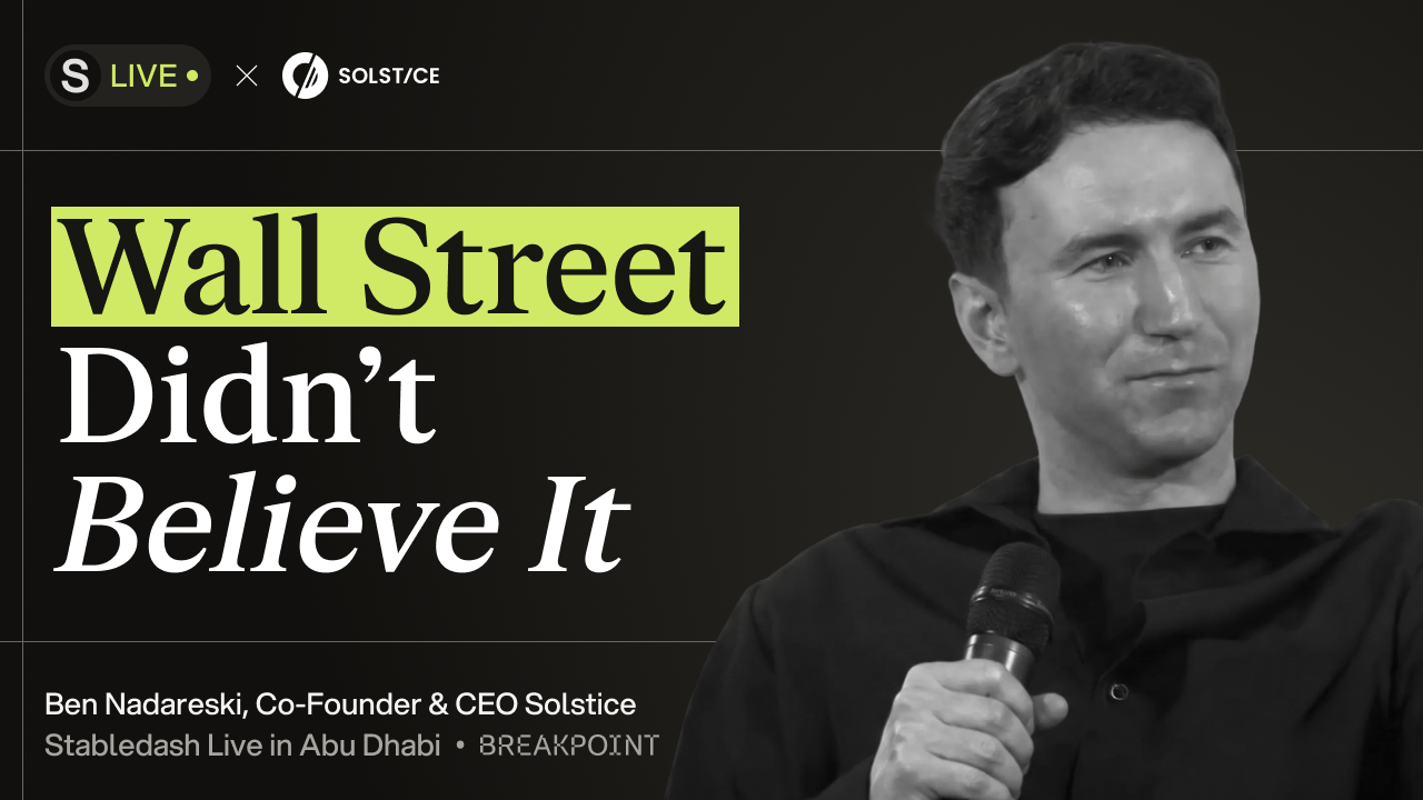 Ben Nadareski, Founder of Solstice, was running a delta neutral strategy at quarter-billion scale before making it public. The result: USX, a synthetic stablecoin on Solana delivering 15% returns with a Sharpe ratio around 7.